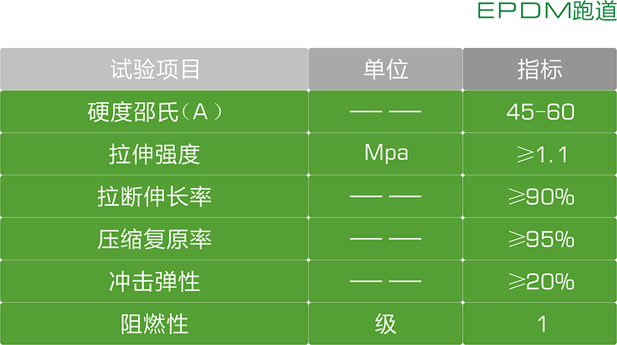 EPDM跑道:彈性適中,平坦耐用,全天候性,滲透型,雨后即可使用,保養容易,維護費低,施工簡便